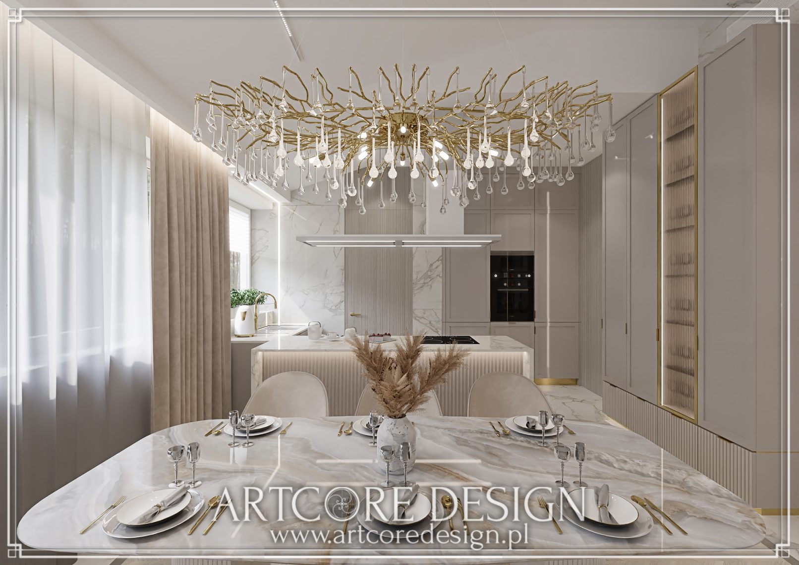 In the heart of modern aesthetics lies a space filled with harmony, elegance, and thoughtful details. This apartment project is a perfect blend of minimalist forms with refined richness of materials and decorations. Designed as a retreat, a social hub, and a recreational space, this interior represents the essence of contemporary luxury.Upon entering the living room, the expansive, comfortable sofa immediately catches the eye, inviting you to relax in a setting of subtle beige tones. Gold accents, from lamps to coffee tables, introduce a soft glow, adding warmth and sophistication. These details harmonize with the marble accents on floors and tables, creating a cohesive image of exclusivity.